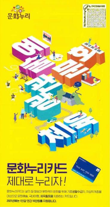 군 관계자는 “문화누리카드 지원액을 늘리고 자동재충전 제도를 시행하는 등 다양한 방법으로 문화 격차를 해소하도록 노력하겠다”고 말했다.