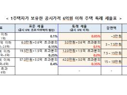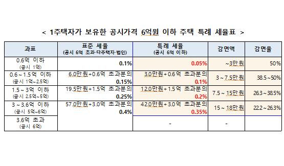 이에 따라 개정된 재산세율 적용하여 보면, 과표 구간별로 공시가격 1억원 이하는 최대 3만원, 1억~2.5억원 이하는 3만원~7.5만원, 2.5억원~5억원 이하는 7.5만원~15만원, 5억원~6억원 이하는 15만원~18만원의 재산세 감면이 예상된다.