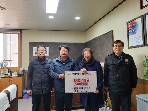 경북 칠곡군에 위치한 ㈜월드에프엘와이의 대표 윤주득은 수년째 고향인 봉화군 재산면에 쌀을 기탁하였고 올해에는 이웃돕기 성금 500만원을 기탁했다.