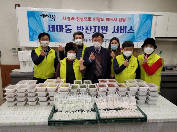 세마동 지역사회보장협의체 김상용 위원장은 “하루 빨리 코로나19가 종식되어 많은 위원들의 참여로 영양 가득한 밑반찬을 직접 만들어 전달할 수 있기를 희망한다.”고 말했다.