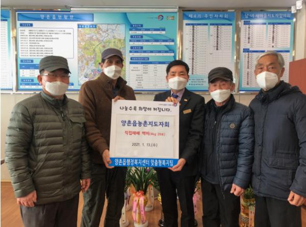 양촌읍 농촌지도자회는 1월 13일 양촌읍으로 직접 재배한 백미(4kg 29포)를 기탁했다. 이번에 기탁된 백미는 긴급 위기사유가 발생한 가구에 배분될 예정이다.