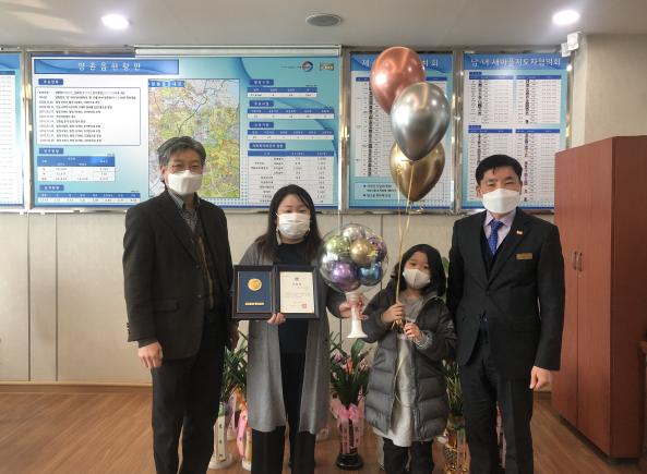 이기일 양촌읍장은 “어린 자녀와 함께 봉사활동에도 참여해 참교육과 나눔을 실천하고 실천하고 계시는 분께 상을 드릴 수 있어 좋다. 좋은 재능이 더 많은 분들에게 행복으로 전달되기를 희망한다”며 축하를 전했다.