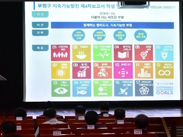 구는 ‘2030년을 위한 부평의 17개 지속가능발전 목표’로 ▲1. 사회안전망 확보, ▲2. 안심급식 ▲3. 건강한 생활을 영위하는 삶 ▲4. 품격 있는 교육도시 ▲5. 성 평등 사회 ▲6. 깨끗한 물 효율적 이용 ▲7. 친환경 에너지 ▲8. 활기찬 경제생태계 ▲9. 풍부한 도시환경 인프라 ▲10. 불평등 감소 ▲11. 희망찬 미래도시 ▲12. 책임 있는 소비와 생산 ▲13. 저탄소 녹색도시 ▲14. 맑고 깨끗한 생태하천 ▲15. 건강한 녹색생태 보존 ▲16. 구민의 신뢰받는 행정 ▲17. 구민과 같이 만들어가는 도시 등을 선정했다.