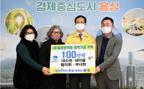 음성군 대소면 새마을남녀지도자협의회에서 13일 음성군청과 대소면 행정복지센터를 방문해 (재)음성장학회와 대소면장학회에 각각 장학금 100만원과 200만원을 기탁했다.