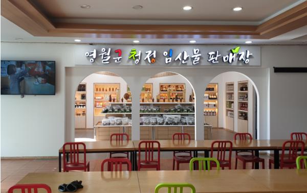임산물 판매장은 72㎡ 규모로 동강휴게소에서 운영하던 특산물 판매장을 외부확장 및 리모델링 공사를 통해 조성하였으며, 영월군에서 생산된 산나물을 비롯한 20여개 품목이 전시·판매되고 있다.