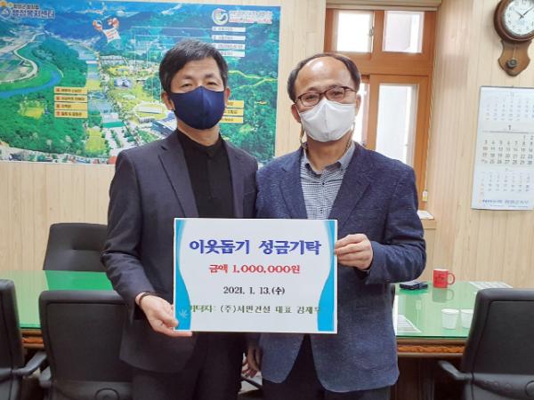함양군내 ㈜서민건설(대표 김재우)에서 지난 13일 함양읍행정복지센터를 방문해 희망 2021 나눔캠페인 성금 100만원을 기부했다.