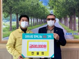 회화면 한울회는 1월 14일 회화면사무소를 방문하여 회화면 취약계층을 위한 이웃사랑 성금으로 50만 원을 기탁해 최근 한파가 이어지는 가운데에도 회화면에는 온정의 손길이 이어지고 있다.