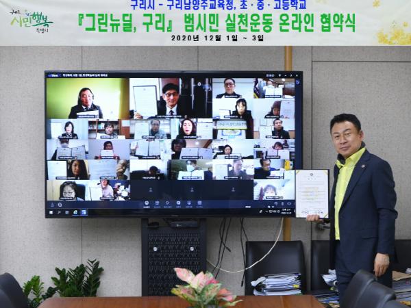 구리시는 지난해 10월 30일부터 12월 31일까지 관내 450개 유관기관 및 민간단체와 「그린뉴딜, 구리」 기후변화 대응 범시민 실천 협약을 체결했다.