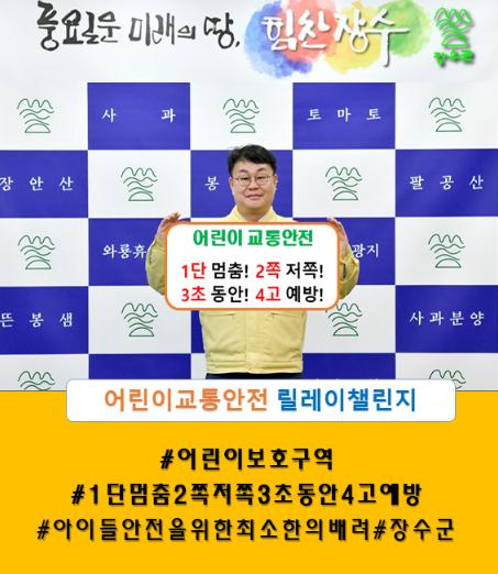 장영수 군수는 11일 어린이보호 최우선 문화 정착과 어린이 교통사고 예방을 위한 ‘어린이 교통안전 릴레이 챌린지’ 캠페인에 동참했다.