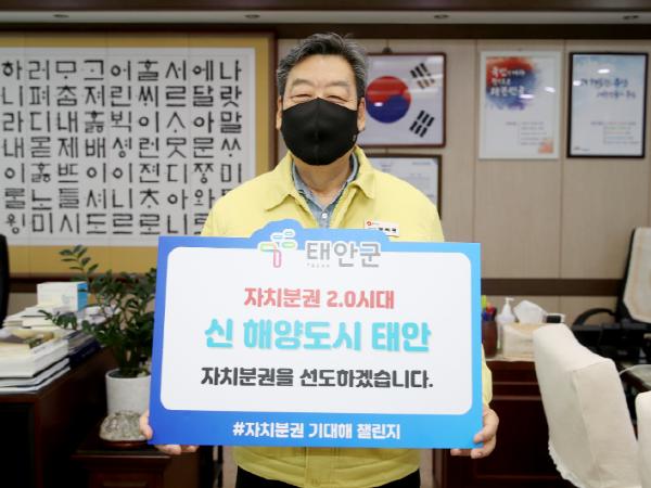 가세로 태안군수가 지난 14일 ‘자치분권 2.0시대’를 맞아 군민이 주인이 되는 진정한 자치분권 실현을 위한 ‘자치분권 기대해 챌린지’에 동참했다.