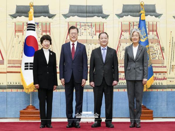 문 대통령은 “정치 경륜을 갖춘 일본 전문가가 신임 주일본 대사로 부임하게 되어 기쁘다”면서 “현재 어려움이 있지만, 한일 양국은 오랜 역사를 공유하는 가장 가까운 이웃이자, 동북아와 세계 평화?안정을 위한 협력의 동반자인 만큼, 양국관계가 미래지향적으로 발전해야 한다”고 했다.