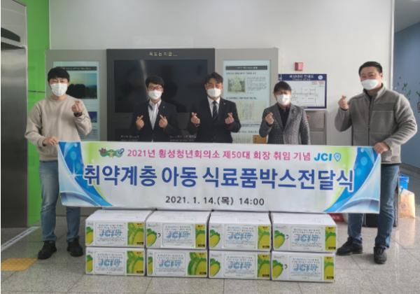 횡성청년회의소에서 1월 14일 횡성군드림스타트를 찾아, 횡성군 저소득 아동에게 배부해 달라며, 식품꾸러미 40세트(250만원 상당)를 전달했다.