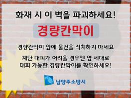 남양주소방서는 아파트 화재 등 긴급 상황 시 탈출을 위한 대피 시설인‘경량칸막이’의 홍보에 나섰다고 밝혔다.