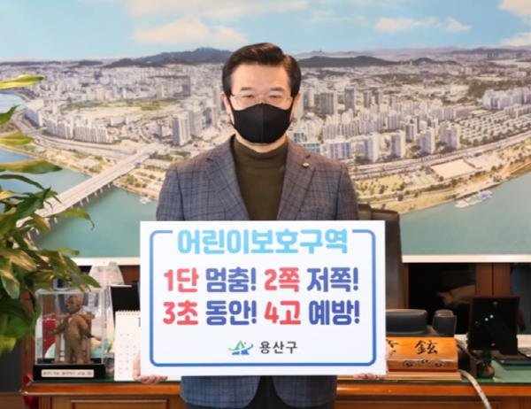 서울특별시 용산구 성장현 구청장이 15일 구청장실에서 '어린이 교통안전 릴레이 챌린지'에 동참했다.
