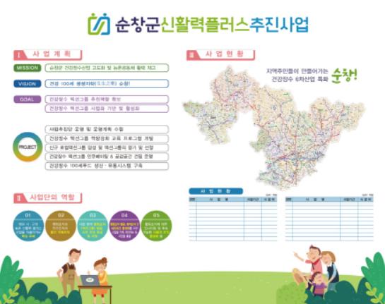 군은 지난 2019년 공모사업에 선정돼 2020년부터 2023년까지 4년간 총사업비 70억원을 투입해 이미 조성된 하드웨어와 효율적인 연계, 액션그룹 발굴과 사람과 산업 그리고 마을간 연계 활성화를 통해 순창군의 새로운 성장동력을 육성해 나갈 계획이다.