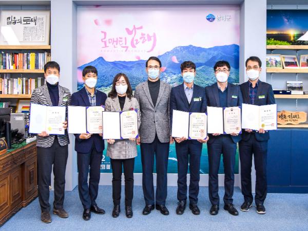 이와 함께, 의정업무를 충실히 수행하여 올바른 지방자치 실현에 기여한 공적을 인정받은 의회사무과 지언석 팀장과 남해군의 숙원사업인 군 청사 신축사업 추진에 기여한 공적을 인정받은 청사신축추진단 서보현 팀장이 정부우수공무원 행정안전부장관 표창을 수상하였다.