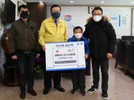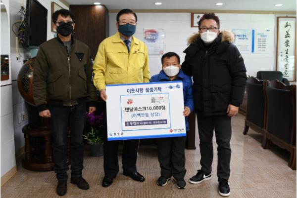 한파의 추위도 녹인 미담의 주인공인 희귀성 질환 시클 증후군을 앓고 있는 정대성 군의 아버지 정희원 씨는 지난 14일 홍성군청을 방문해 덴탈 마스크 10,000장을 기부했다.