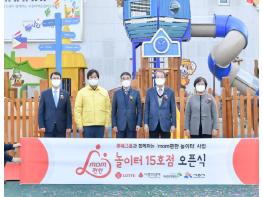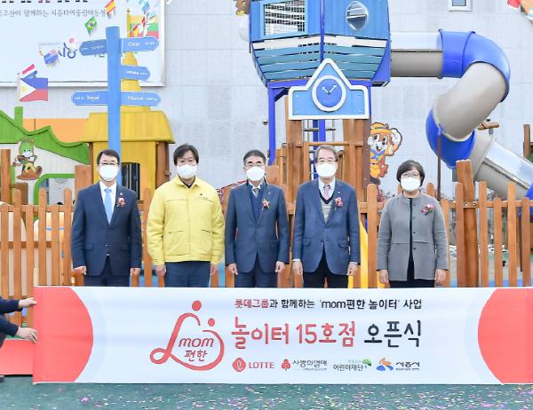 시흥시는 롯데그룹의 지원을 받아 14일 큰솔공원(정왕동 1512)에 ‘mom편한 놀이터’15호점을 오픈했다. 이 날 행사에는 임병택 시흥시장을 비롯해 고수찬 롯데지주 부사장, 이제훈 초록우산 어린이재단 회장, 김연순 사회복지공동모금회 사무총장, 박춘호 시흥시의장 등이 참석했다.