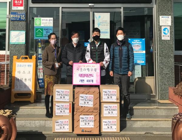 창녕군 영산면 태일태권도(관장 김정훈)는 영산면사무소를 방문해 어려운 이웃들에게 전달해 달라며 라면 400개를 기탁했다.
