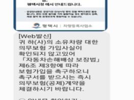 평택시차량등록사업소는 금년 1월부터 ‘자동차?건설기계 등 의무보험 미가입 과태료 고지를 모바일 전자고지(SMS) 서비스’로 시행한다고 밝혔다.
