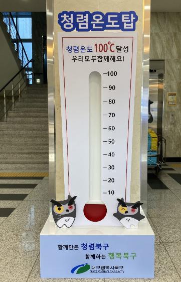 대구 북구청은 2021년 반부패·청렴정책의 효과적인 추진을 위해 청렴온도탑을 제작, 청사 1층 로비에 설치했다.