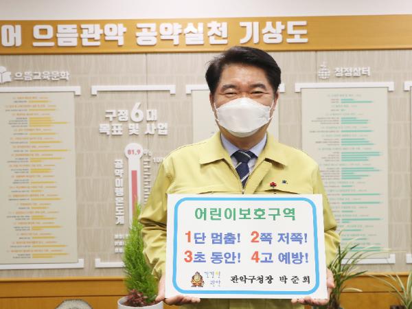 박준희 관악구청장이 15일, 어린이 보호 문화 정착과 어린이 교통사고 예방을 위한 ‘어린이 교통안전 릴레이 챌린지’ 캠페인에 동참했다.