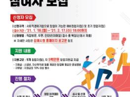김해시는 오는 1월 18일부터 2월 17일까지 “2021년 사회적기업 창업 BOOM-UP(붐업) 사업” 참여자를 모집한다고 밝혔다.