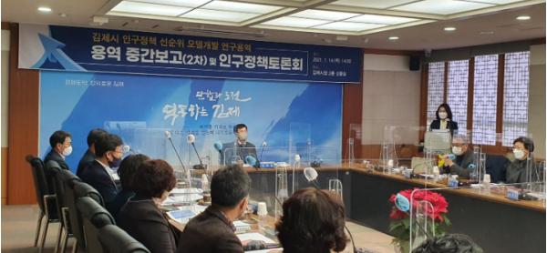 김제시는 지난 14일 김제시청에서 인구정책위원회, 실무TF팀, (재)전북연구원 등 30여 명이 참여한 가운데 「김제형 인구정책 선순위 모델 연구용역」2차 중간보고 및 인구정책토론회를 개최했다.