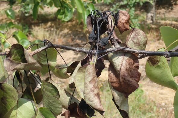 15일 군에 따르면 과수화상병은 세균성 병으로 주로 개화기 때 곤충에 의해 옮겨지며 병이 발생한 나무는 잎이 시들어 검게 변해 마치 불에 탄 것처럼 보인다.