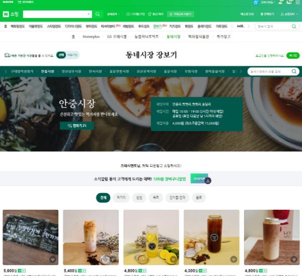 이용을 위해서는 네이버에서 ‘동네시장 장보기’를 검색하여 안중시장을 클릭하면 다양한 전통시장 먹거리 정보가 펼쳐진다.