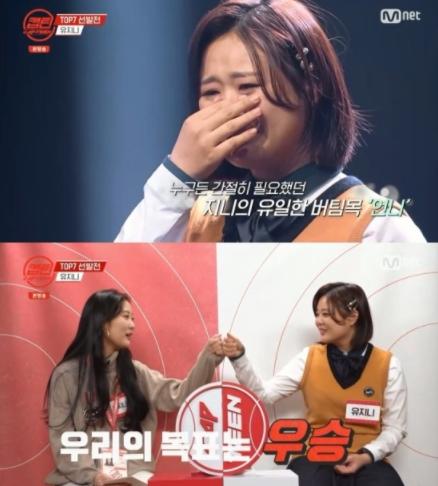 지난 14일 방송된 Mnet ‘캡틴’(CAP-TEEN)에서는 1:1 라이벌 미션을 마치고 TOP7 선발전에 임하는 유지니의 모습이 공개됐다.