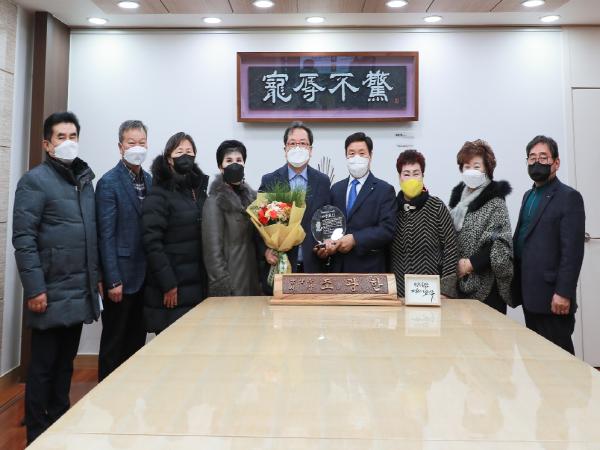 간담회에 앞서 이덕우 남양주시 새마을회장은 조광한 시장이 남양주시 발전에 기여한 공에 대한 감사의 마음을 담아 감사패를 전달했으며, 감사패에는 뚝심 있는 행정으로 교통·공간·환경의 비약적 성과를 이루어 낸 조광한 시장의 노고를 빗대어 ‘비상’이라는 글자가 새겨졌다.
