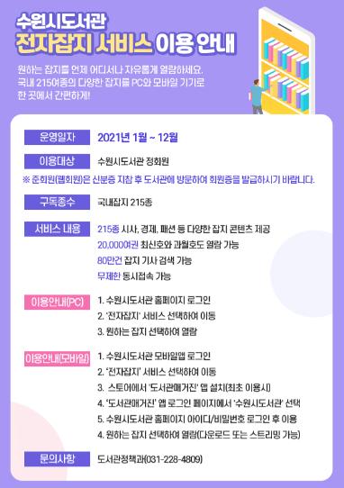 “관심 있는 분야의 잡지를 수원시도서관 홈페이지에서 찾아보세요.”