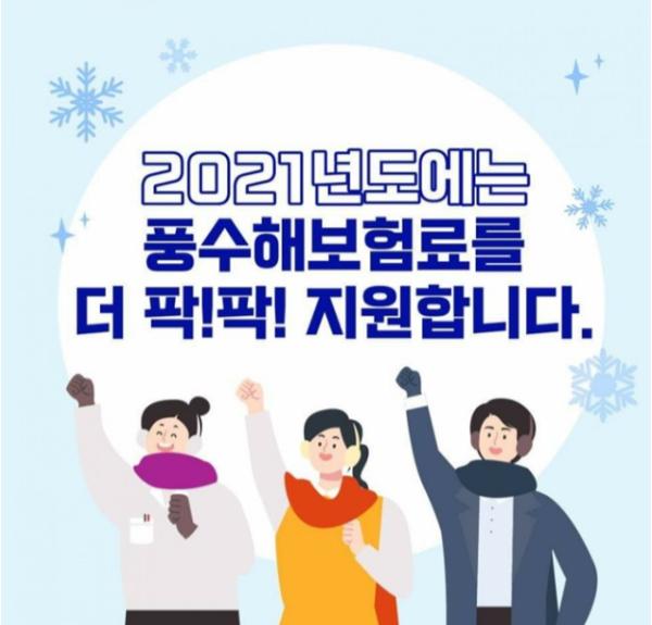 군에 따르면, 올해부터 홍수·태풍·폭설 등 각종 풍수해로 인한 자연재해로부터 군민의 소중한 재산을 보호해주는 ‘풍수해보험’의 보험료에 대한 정부지원금이 대폭 상향된다.