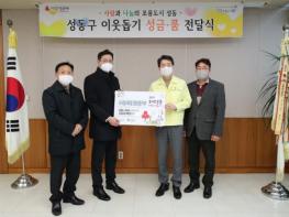 서울 성동구는 15일 (사)서울시옥외광고협회 성동구지부와 함께 이웃돕기 성금 전달식을 개최하고 오백만원의 성금을 후원받았다.