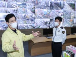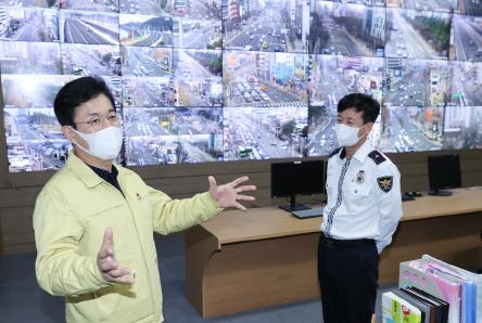 먼저 유성구 봉명동에 위치한 스마트도시통합센터를 방문한 허태정 시장은 시민안전을 지키기 위해 24시간 운영되는 통합센터의 시설 곳곳을 둘러보며 직원들의 노고를 살폈다.