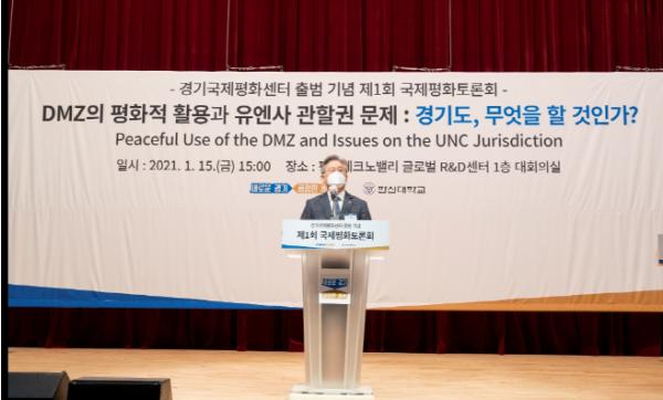 특히 이 지사는 도라산전망대 내 평화부지사 집무실 설치가 유엔사의 반대로 무산된 것과 관련 “경기도 땅에 공식 업무공간을 만드는 것조차 유엔사의 승인을 받아야 한다는 사실이 안타깝다. 적절했는지도 문제거니와 이것이 정당한 일인지 깊은 고민이 필요 하다”고 강조했다.