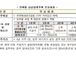 임대조건은 시중 전세 시세의 70~80% 이하 수준이며, 기본 임대조건의 80%를 임대보증금으로, 나머지 20%를 월임대료로 납부해 입주자들의 주거비 부담을 줄이는데 도움이 될 전망이다.