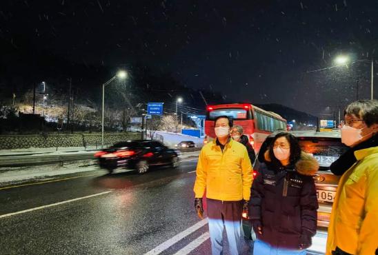 한편 은수미 성남시장은 17일 오후 상대원동 환경에너지시설을 들러 염화칼슘 보유 현황을 확인하고, 갈현고가교를 방문해 경충대로 제설장비 전진 배치 현장에도 나섰다. 뒤이어 운중동 한국학연구원 앞 성남~의왕간 도로 제설장비 배치 현장도 찾아 성남시 전역에 대해 제설상황을 보고받고, 현장 점검을 이어갔다.