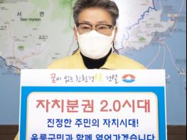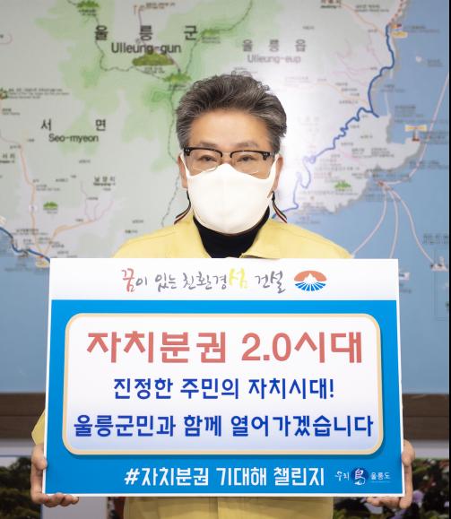 김병수 울릉군수는 ‘자치분권 2.0시대’개막을 응원하는 ‘자치분권 기대해’ 챌린지에 동참하면서 “진정한 주민자치시대 울릉군민과 함께 열어가겠다.”라고 15일 밝혔다.