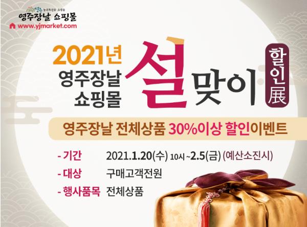 영주시는 오는 1월 20일부터 2월 5일 까지 영주장날 쇼핑몰 설맞이 할인이벤트를 개최한다.