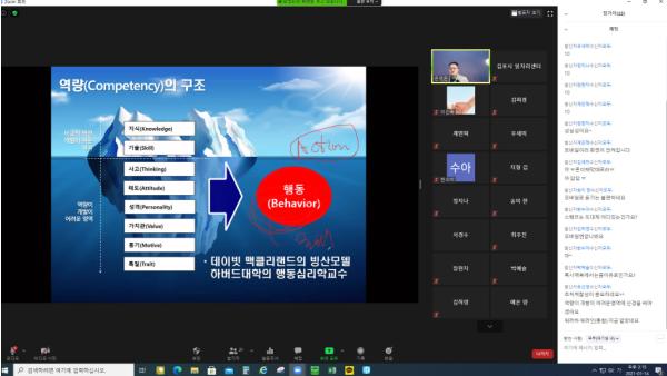 이번 특강은 코로나-19로 인한 사회적 거리두기 방역수칙을 지키기 위해 줌(zoom) 프로그램을 이용한 온라인 방식으로 진행하였으며, 채용과 일자리 분야 전문가인 윤영돈 강사가 “2021년 채용트렌드 분석과 취업 전략”이라는 주제로 특강을 실시했다