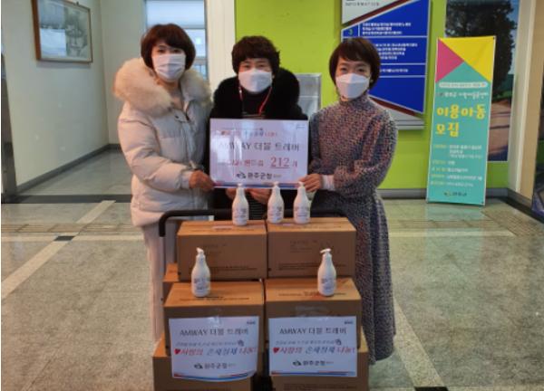 완주군은 암웨이에서 드림스타트 아동들을 위해 손세정제를 후원했다.
