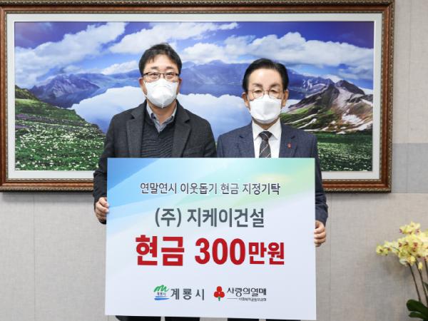 계룡시는 15일 지케이건설(대표 이효덕)에서 취약계층을 위한 현금 300만원을 기탁해 왔다고 밝혔다.