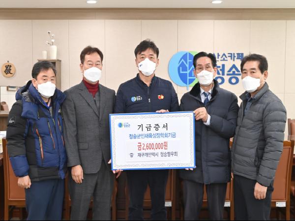 재구개인택시청송향우회는 대구에서 개인택시를 운영하는 청송출신자들의 모임으로, 고향의 후배들을 위해 2016년부터 장학금을 전달하여 왔으며 올해까지 총 1,480만원을 기탁해 고향사랑에 앞장서고 있다.