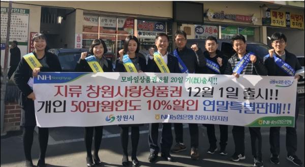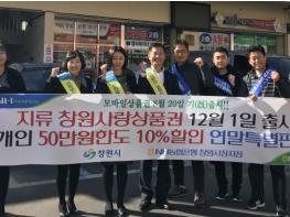 창원시(시장 허성무)는 21일 NH농협창원시청지점과 상남시장에서 지류 창원사랑상품권 발행 홍보 및 활성화 캠페인을 실시했다고 밝혔다. 상남시장 소상공인들에게 가맹점 모집활동도 펼쳤다.