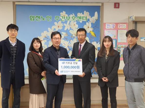 한국주택금융공사 경남서부지사(실장 김원태)는 지난 19일 삼가면 소재 농어촌종합재가노인복지시설인 합천노인복지센터(센터장 이희목)를 방문하여 지역사회의 노인복지사업 활성화 및 소외된 저소득 지역 어르신들을 위해 사용해 달라며 후원금 100만원을 전달했다.