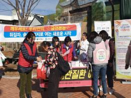 산청군이 21일 ‘음주폐해 예방의 달’을 맞아 산청시장 일대에서 지역주민을 대상으로 절주·금연 캠페인을 실시했다.