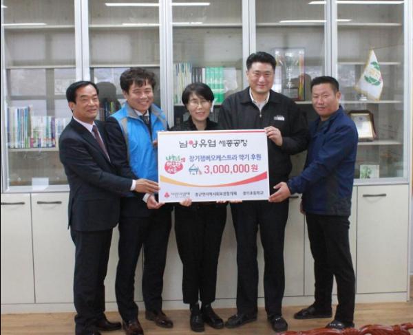 이번에 전달된 후원금은 남양유업㈜ 세종공장 직원들이 자발적 급여공제로 모은 성금으로, 장기초등학교 학생들로 구성된 장기챔버오케스트라의 악기 구입, 강사료 등 운영비로 사용될 예정이다.