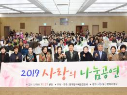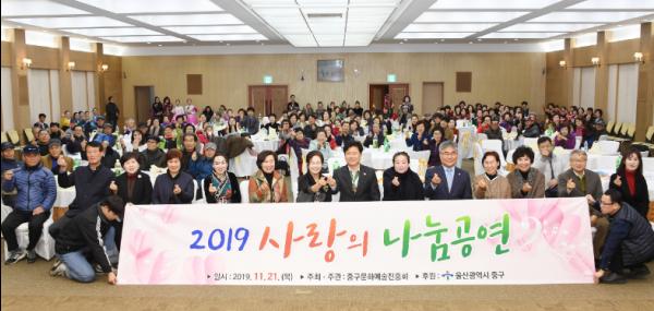 울산중구문화예술진흥회(회장 오산옥)는 21일 오후 5시 중구 청사 2층 중구컨벤션에서 '2019 사랑의 나눔공연'을 진행했다.